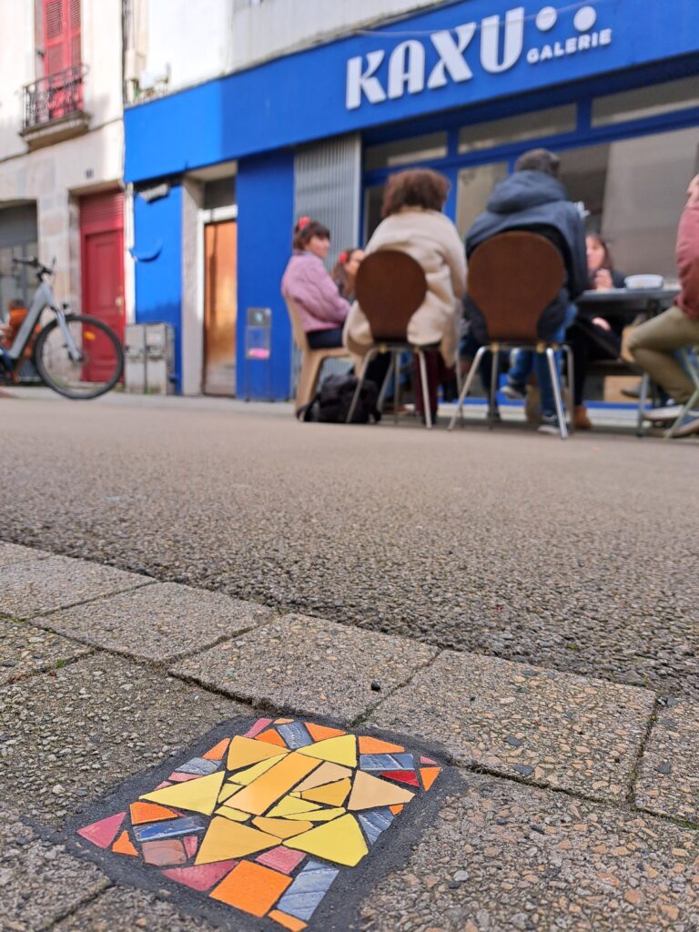 À travers la mosaïque, Elzarra répare les failles de la ville de Bayonne et les transforme en points d’attention.