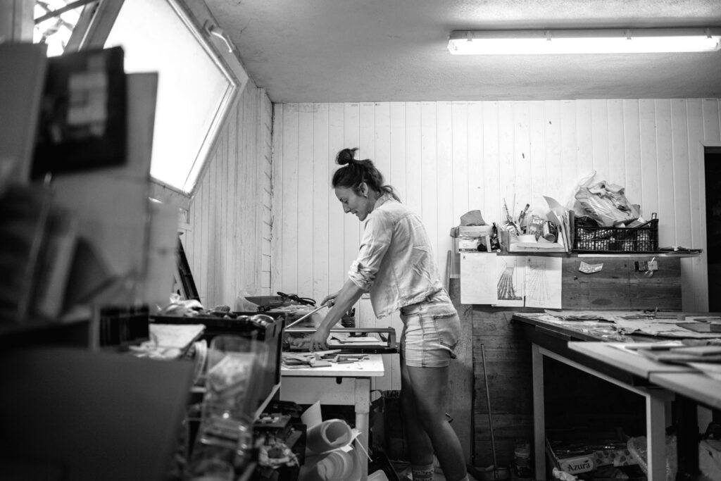 Elzarra est artiste visuelle installée dans le Sud-Ouest de la France. Depuis l’enfance, elle crée avec ce qui l’entoure : matériaux naturels, objets abandonnés, fragments à réinventer. Originaire d’Auvergne, où les ressources sont brutes mais l’imaginaire fertile, elle développe très tôt un lien instinctif à la matière et à la récupération.